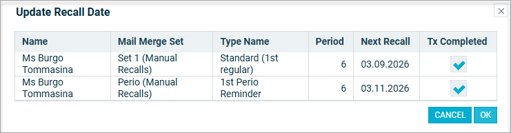 Click OK button to update the recall date