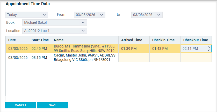 Arrived, Checked In and Checked Out in Dental4Windows