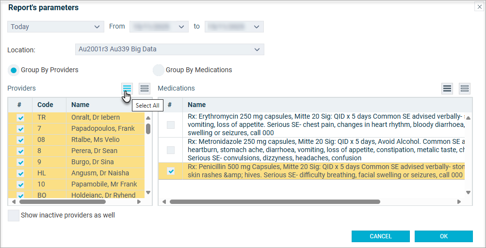 - Show inactive providers and staff as well: Tick to include inactive Providers