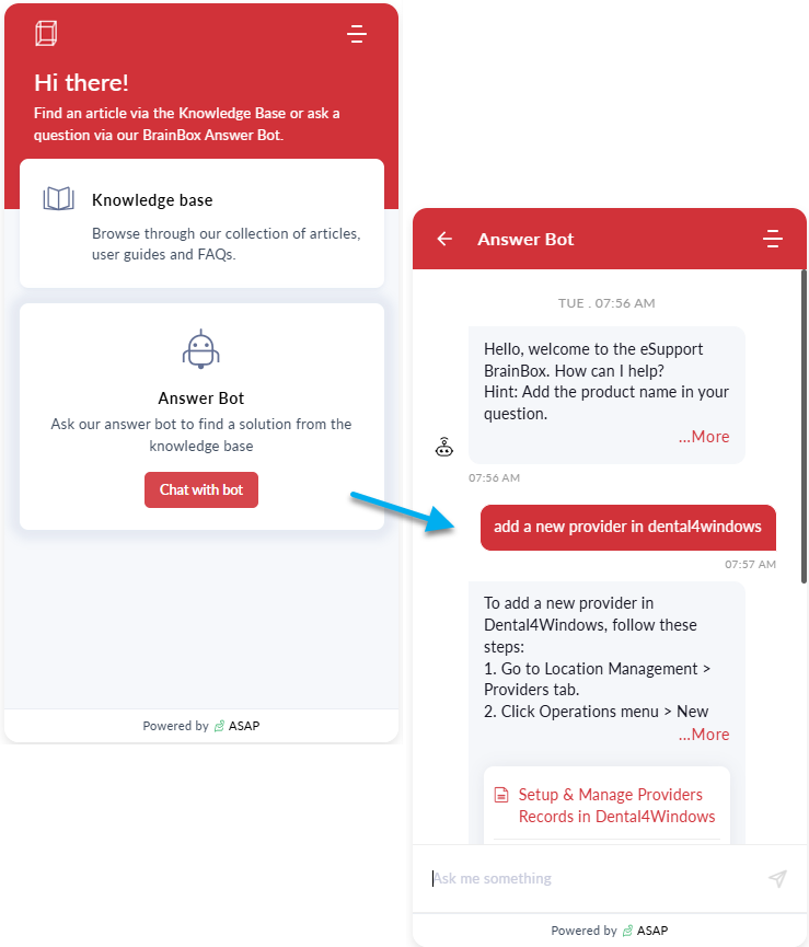 Or click on Chat with bot in the Answer Bot to ask the BrainBox a question.