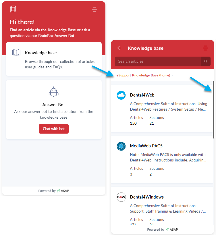 eSupport Knowledge Base Navigation for Dental4Windows users