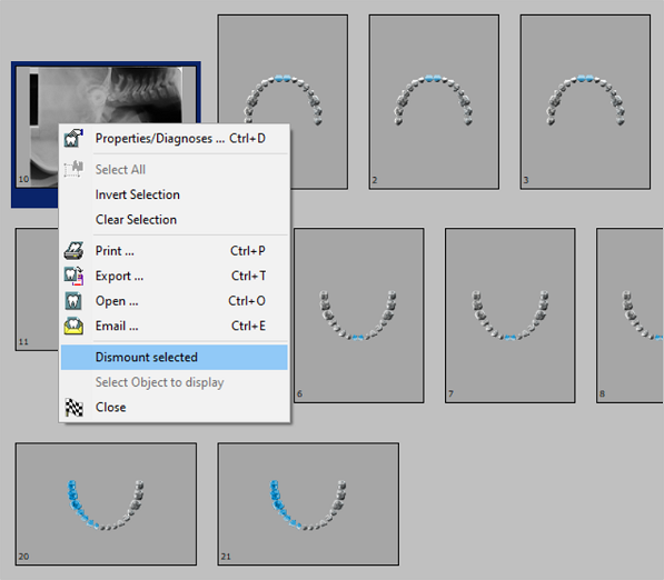 - Any image can be dismounted (removed from the study) by right-clicking on the image and selecting Dismount selected
