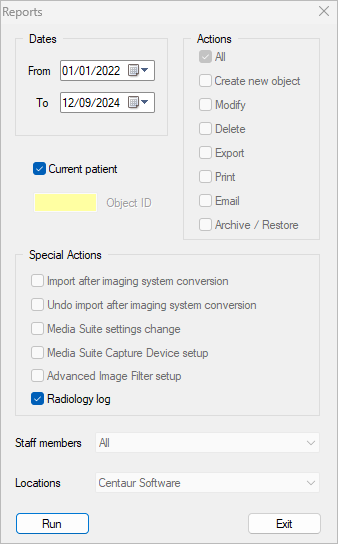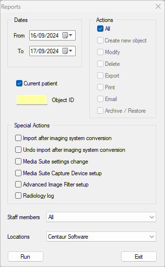 - Object ID: When an image is saved in Mediasuite it assigned a unique (sequential) ID (number); this is Object’s (or image’s Object ID). If specified only data for a specific image is reported, if blank all images are reported