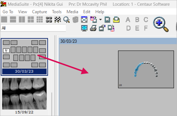 - Drag and drop image to a section of the study by holding left-click mouse button