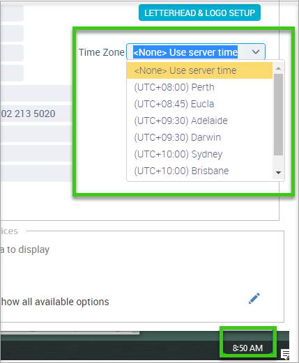 Select the required Time Zone from the drop list