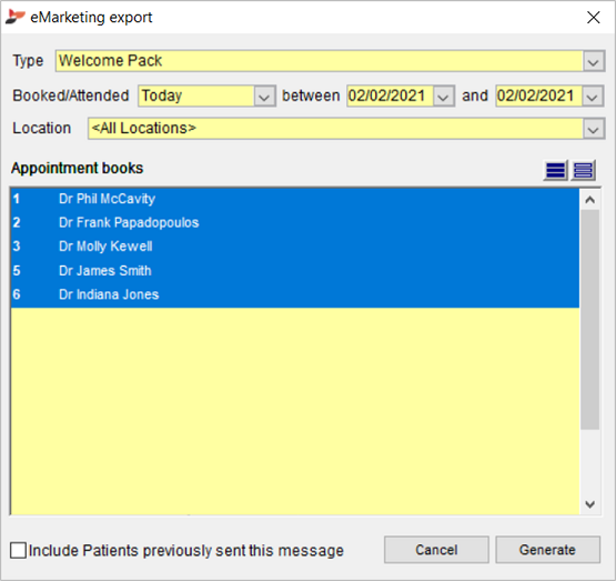 Export Patient list for D4W Marketing New Patient Welcome Packs