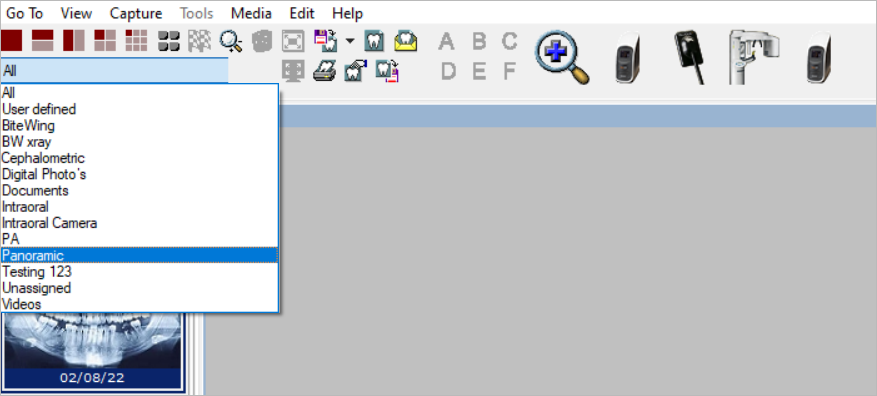 When Images are captured or imported into MediaSuite they can be filtered within Dental4Windows Charting.