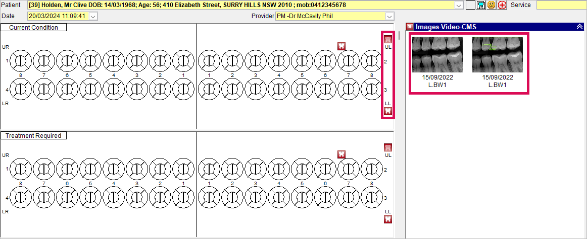 - If the image is assigned to a bitewing, the icon will appear on the both upper and lower jaws