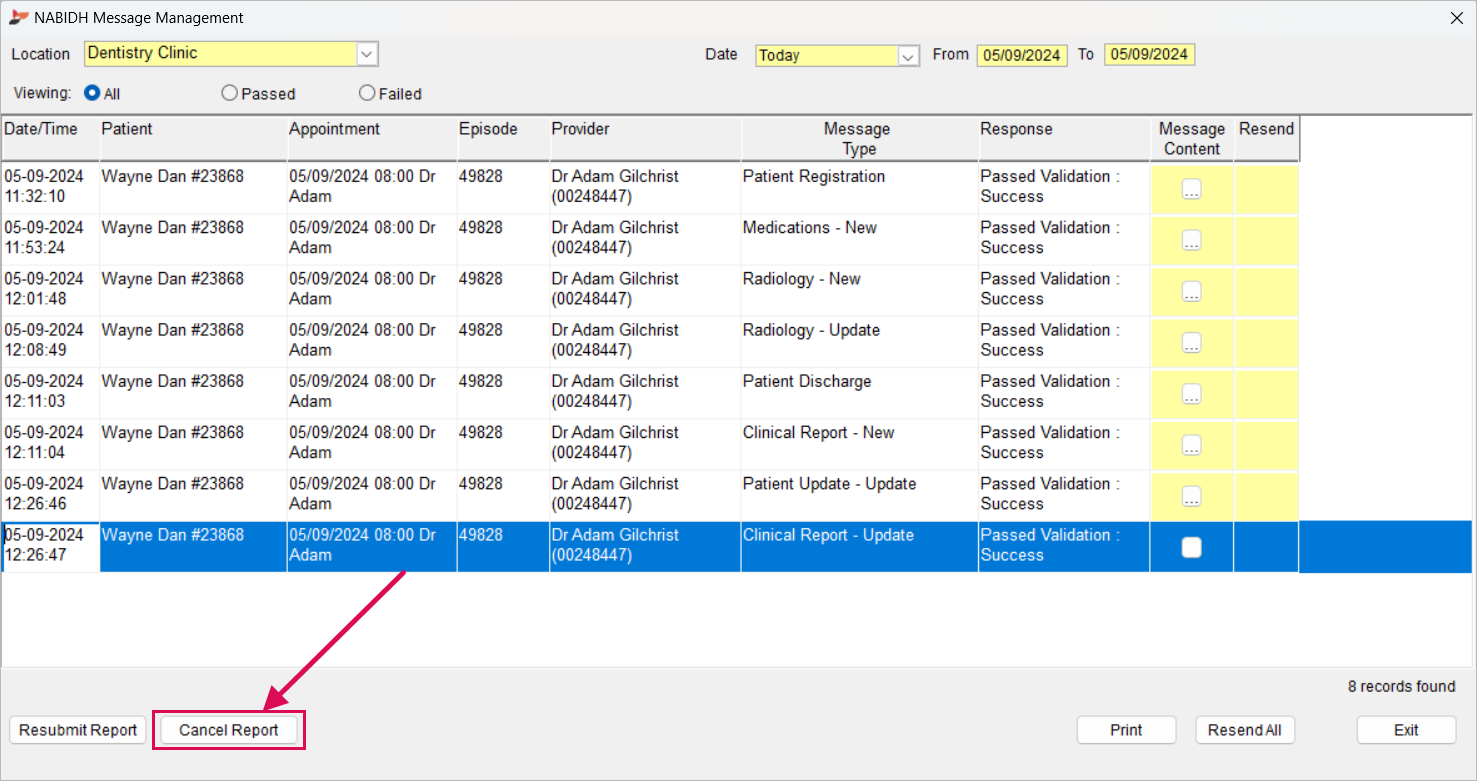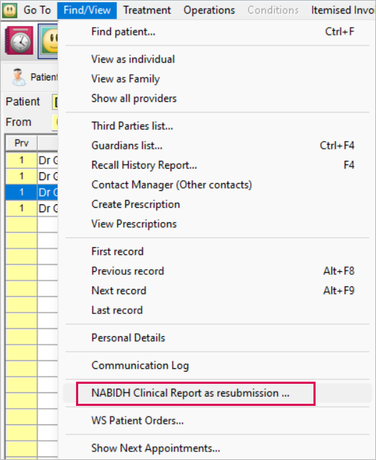 - In Find/View menu click NABIDH Clinical Report as resubmission...