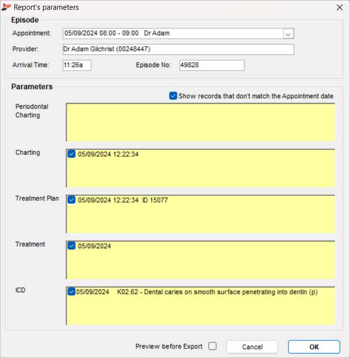 - Select Preview before Export to preview the Clinical Report before resubmission