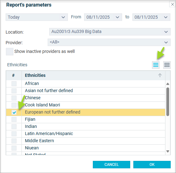 - Show inactive providers as well: tick to include providers no longer working at the practice