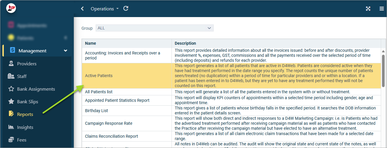 - Double click to open the Active Patients report