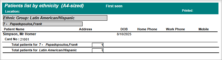 The report will also show the count of patients allocated to each ethnic group.