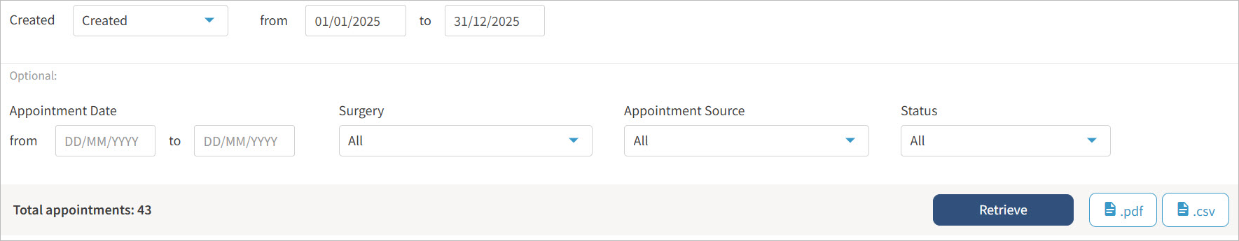 Created: Select the period when the Appointment was created to base this report on