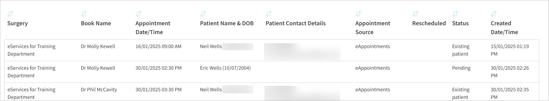 Rescheduled: It indicates that the appointment was successfully booked, but after it was confirmed, it was moved to a different time slot in the appointment book.