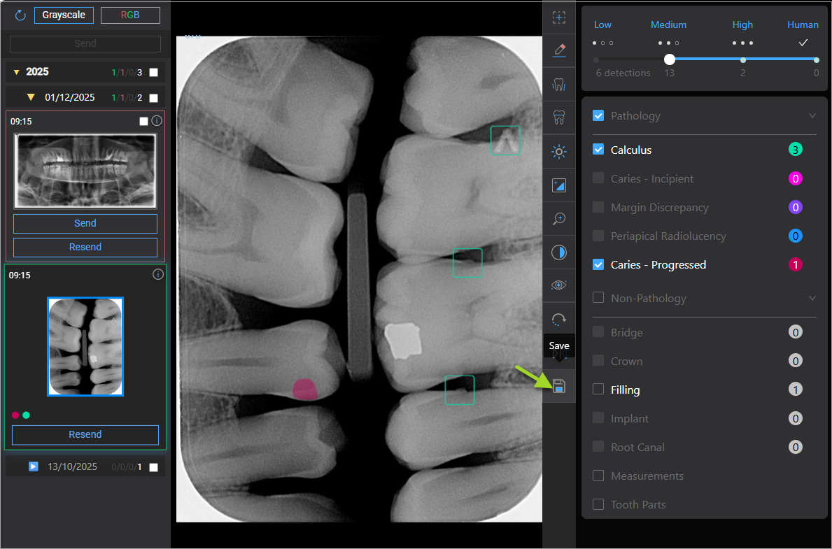 Assess and detect dental pathology in x-rays via the Second Opinion interface.
