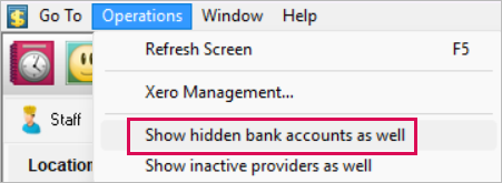 - Operations toolbar > Show hidden bank accounts as well. (Adds a tick)