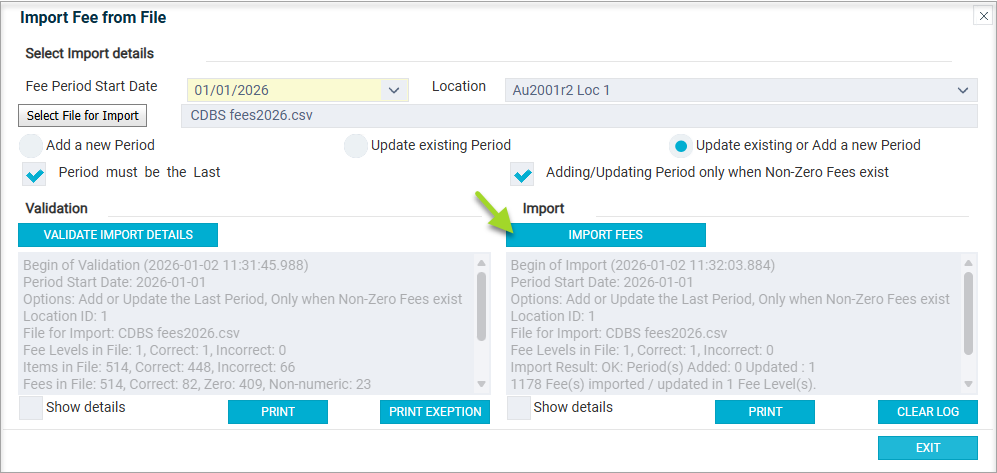 - Tick box: Adding/Updating Period only when Non-Zero Fees exist