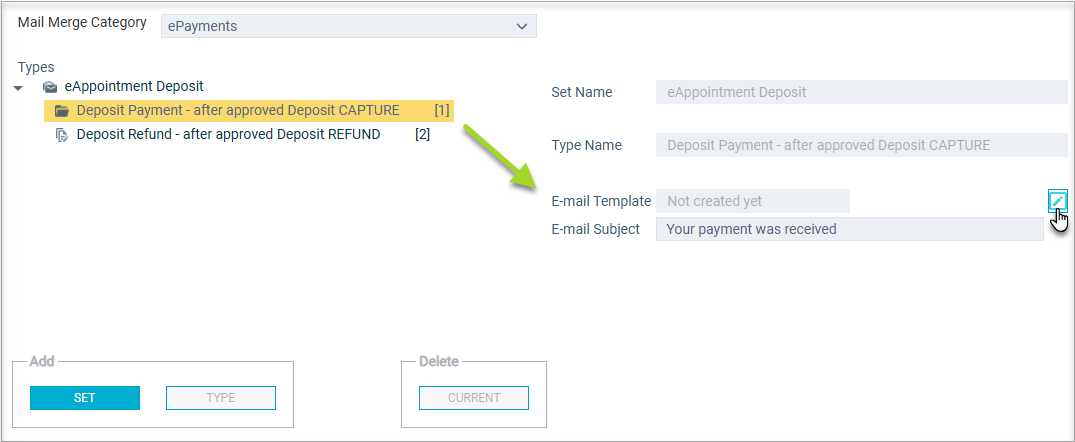 An email is sent to a patient when an ePayment deposit has been received or refunded. These email templates must be set up.