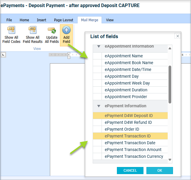 - Select the category (e.g. ePayment Information > ePayment D4W Deposit ID)