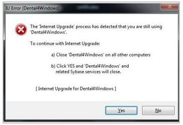 The 'Internet Upgrade' process has detected that you are still using 'Dental4Windows'.