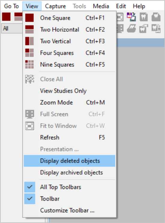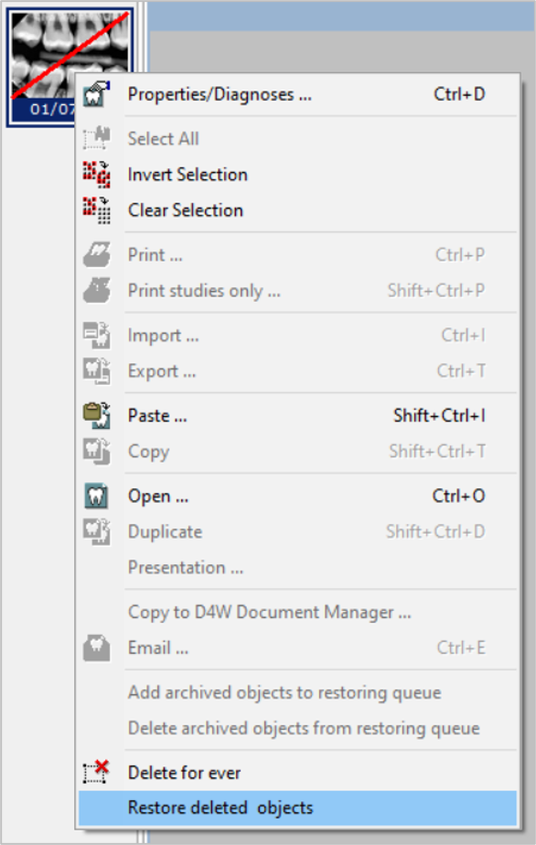 - Right-click on a deleted image thumbnail > Restore deleted objects
