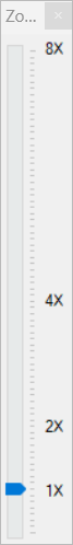 Shows current zoom setting. Zoom can be adjusted by moving the slider to the left or right