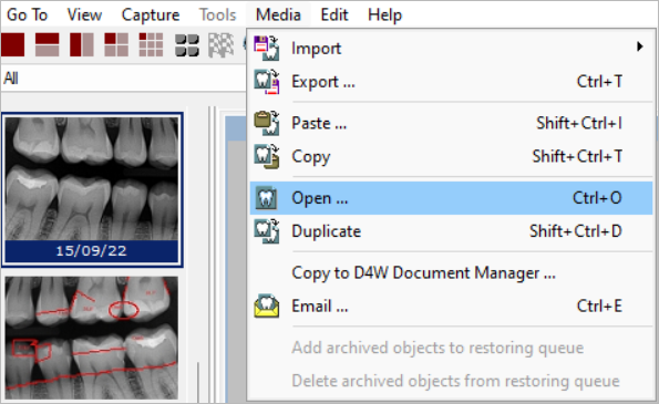 A 3D volume can be opened in all the same ways a 2D image can be opened from Dental4Windows and Mediasuite.